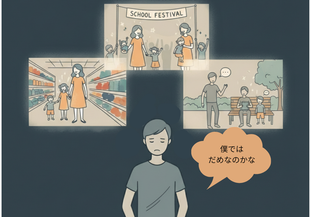 本当は、継親と子どもは「途中から始まる関係」であり、 自然な距離感がすぐに生まれないのは当たり前のことです。 それでも、周りの親子の姿が目に入ると、 どうしても自分を比べてしまう。 その苦しさは、多くの継親が抱えているものです。